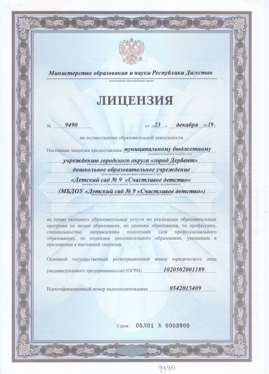 Полное наименование образовательной организации* Муниципальное бюджетное дошкольное образовательное учреждение городского округа "город Дербент" "Детский сад № 9 "Счастливое детство""